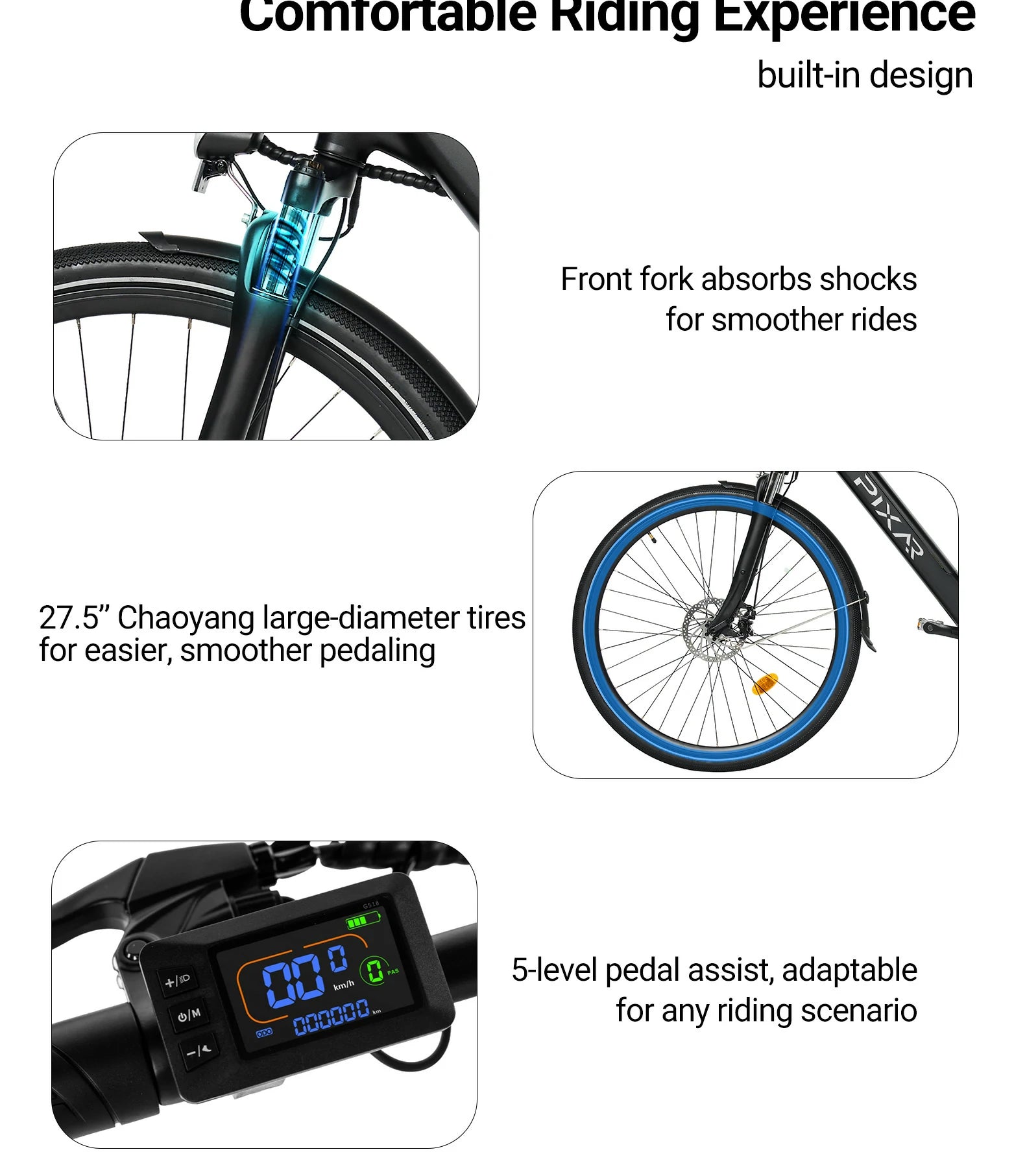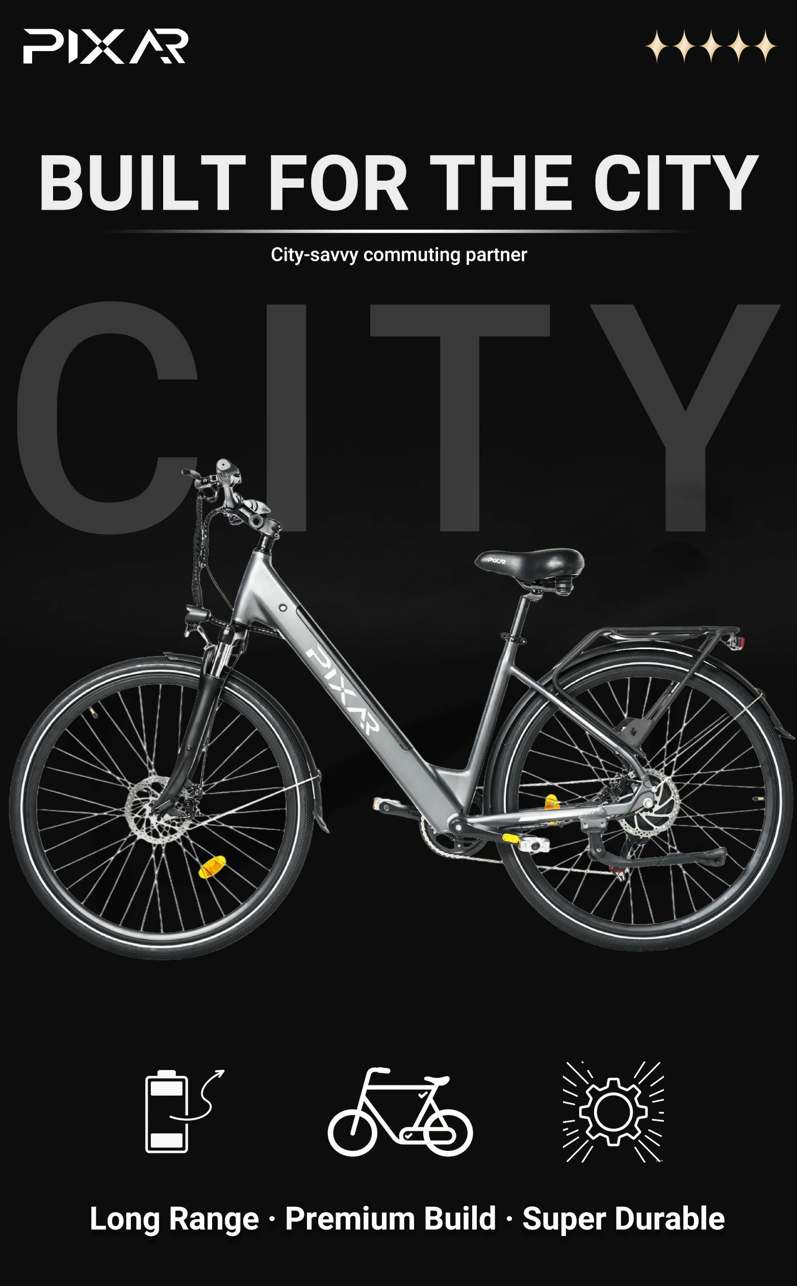 I purchased the Pixar City1 two months ago for my daily 10km commute, and it has been an absolute game-changer. The 250W rear hub motor is smooth and provides just the right amount of boost, especially when starting from a stop. The 36V battery consistently delivers around 35km per charge, which is more than enough for my needs. I appreciate the simple, clean design and the sturdy feel of the frame. The mechanical brakes required a slight adjustment out of the box but have been reliable since. The 27.5-inch wheels make for a comfortable ride, and the hardtail suspension is sufficient for city pavement. Charging does take a full 6 hours, so I plan accordingly. Overall, a fantastic value e-bike that I would highly recommend to urban commuters.