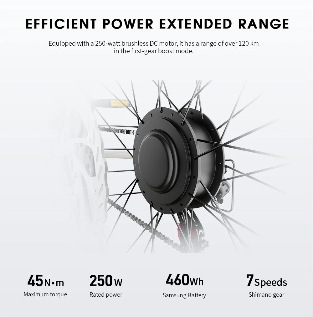 250W Motor | 36V 12.8AH Battery | 25km/h Speed | 85-100km Range
