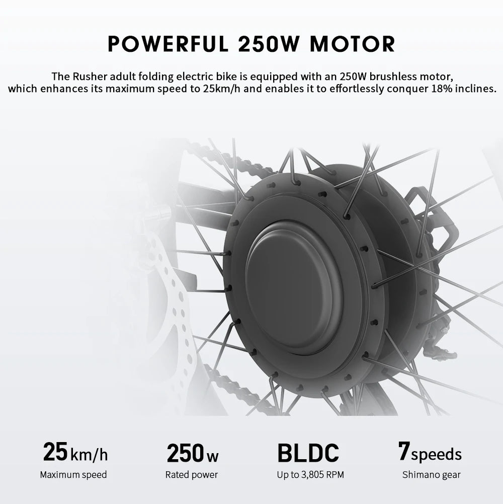 Leading historical walking tours, I use the Rusher to scout routes and transport presentation materials. The 25km/h speed allows keeping pace with walking groups when needed. The battery lasts through multiple route checks before tours. The upright position provides visibility for route assessment. The mechanical brakes offer precise speed control in pedestrian areas. Waterproofing protects electronics during outdoor reconnaissance. After a season of daily use, the bike has become integral to my tour preparation. The only addition was a handlebar-mounted tablet holder for historical maps. For tour guides and outdoor educators, this e-bike enhances route planning and material transport.